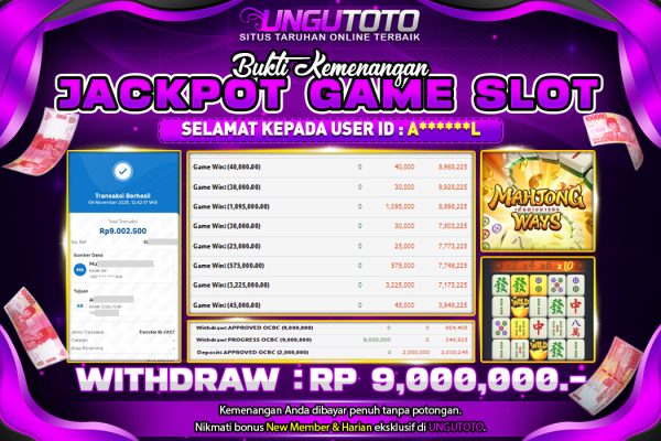 UNGUTOTO | BUKTI PEMENANG SLOT PG SOFT MAHJONG WAYS TANGGAL 09 NOVEMBER 2025 RP. 5,101,000,. LUNAS